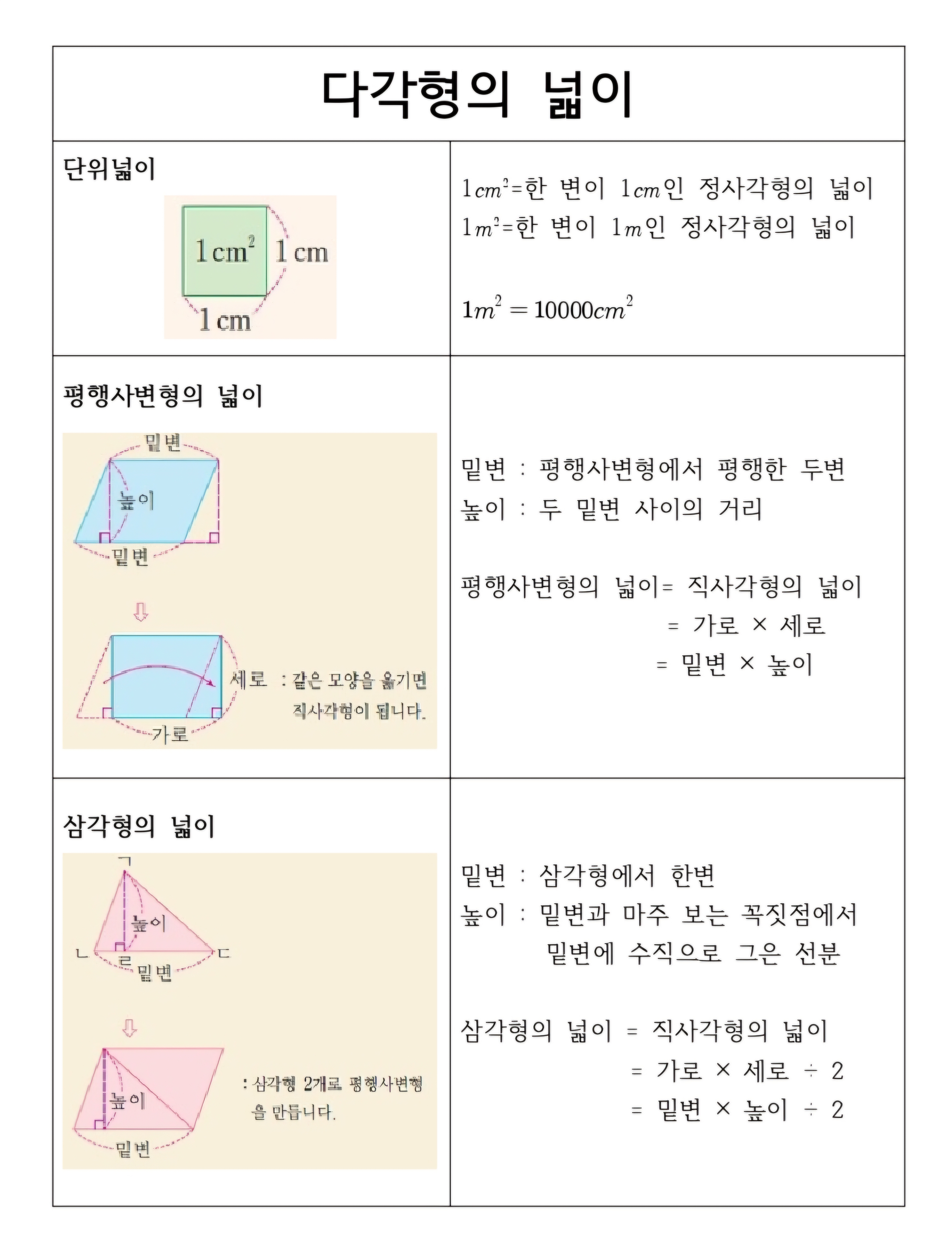 다각형의 넓이에 대한 자료이며, 자료 미리보기 사진 첨부합니다.