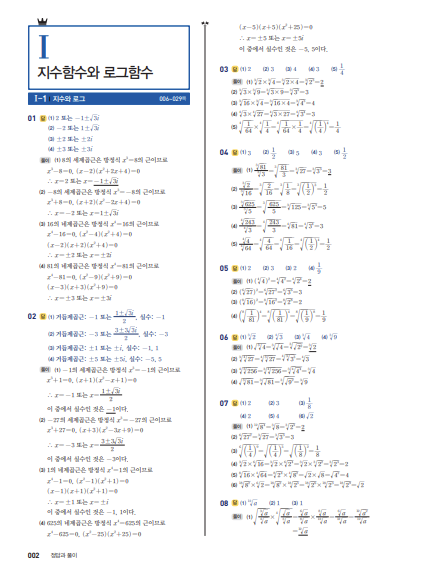 🔹 지수와 로그 – 지수법칙과 로그의 성질을 이해하고, 이를 활용한 계산과 문제 해결력을 기를 수 있습니다.